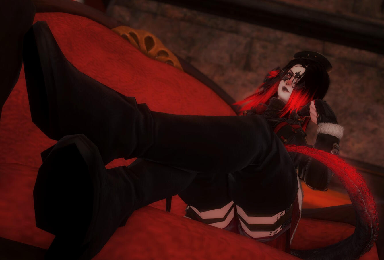 nevermora von'gale, once a simple xaela, corrupted by a memoria crystal in an amateur attempt at peering into the memories held within. Losing her mind and sense of self over time, she was exiled from her tribe.(WIP)